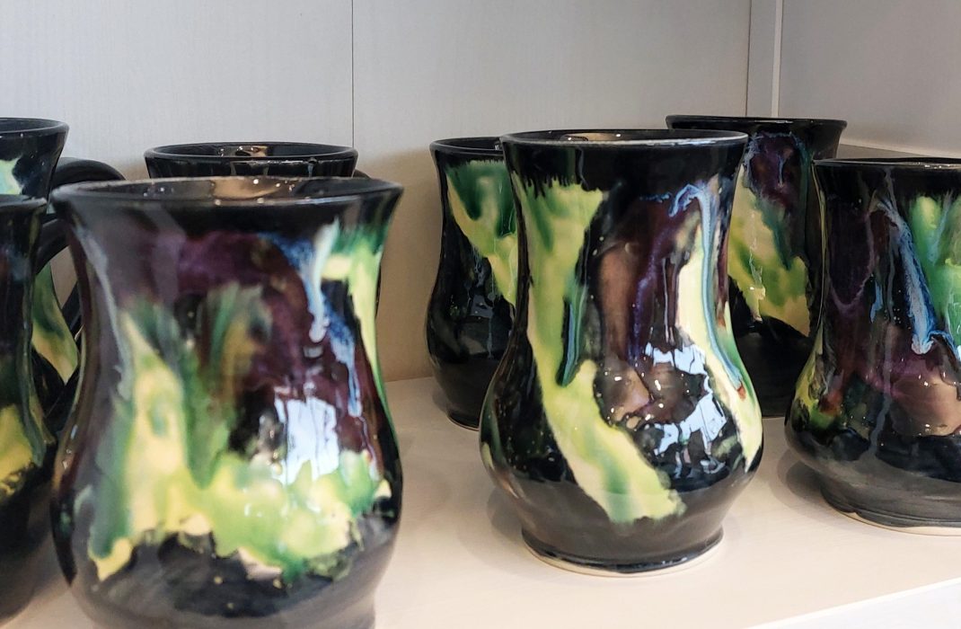 Dawn Gullackson is originally from Windsor, Ontario and she now resides in British Columbia. As well as an artist and potter she works as a medic and security guard and went to helicopter school. Dawn enjoys flying with her husband around the Muskwa-Kachika management area which is a vast wilderness all along the Alaska highway. This area is a large inspiration for her work. In 2016, Dawn did a large project where she painted 100 paintings in 100 days. She auctioned them off and gave all of the proceeds to the Fort Nelson Heritage Museum. Dawn’s pieces are also inspired by the theory of Fibonacci’s sequence and its connection to nature. She creates with the theory that nature is vast and wonderful, but it also has some repeated sequences. Dawn dabbles in many different types of media and pottery came later in her life, but now serves as her latest passion. She loves pottery for its challenge, making different shapes and forms as well as adding in new elements and playing with glazes and seeing what science experiment she can come up. She is inspired by potters such as Linda Doherty and Simon Leach. Dawn’s motto is “I am Art and Art is in me” and she lives this feeling everyday.