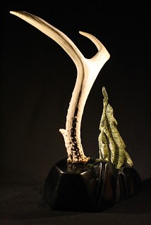 Below is a close up of the tree with the antler trunk. This was actually the base of the Y in the antler splitting off into two directions so I broke them apart like a wish bone, you can see the break straight on below. I hope this piece brings someone tremendous luck.