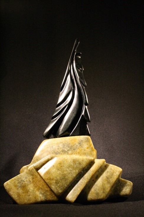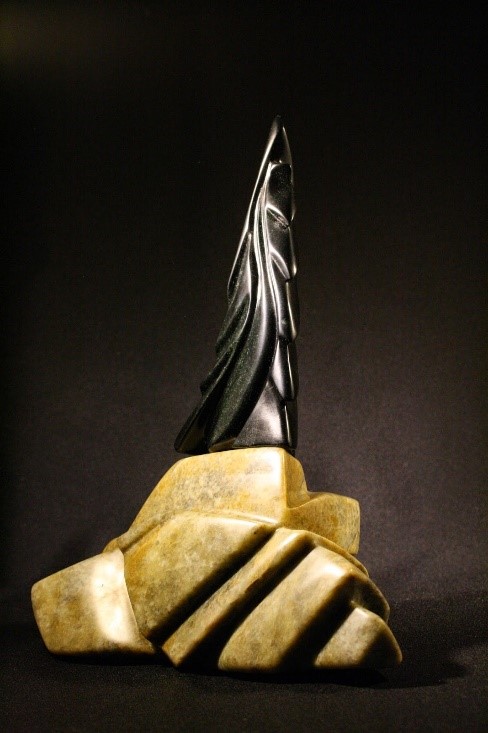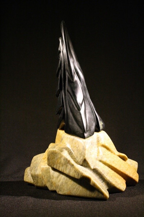 Bear Hill Spruce is the first new piece since the opening of Stories in Stone at the Art Gallery of Grande Prairie.