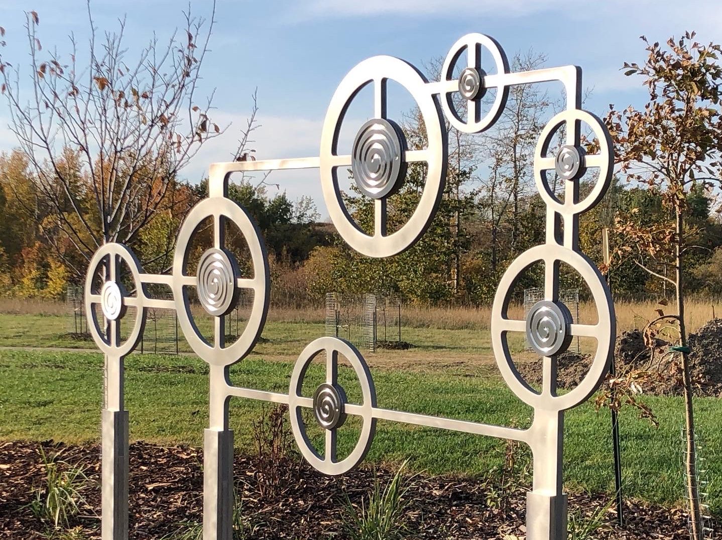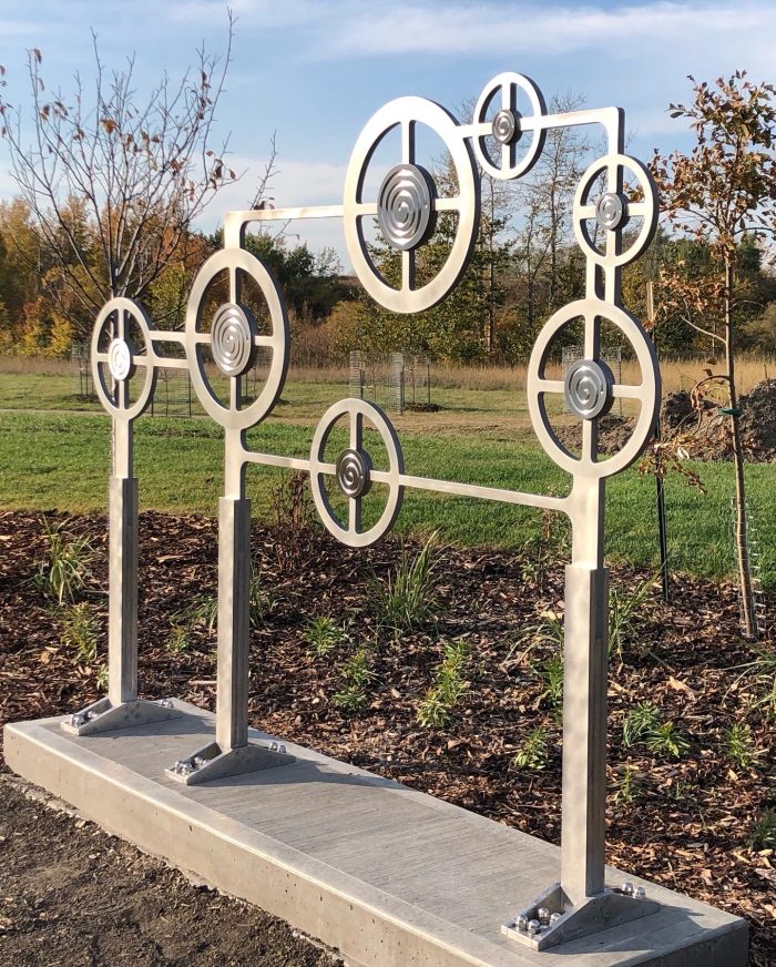 I recruited one of my gallery artists, Alessio Zilli to manufacture the piece. Alessio is a gifted knife maker from Switzerland, now in GP with a background of working on public sculpture in Europe. The sculpture is 100% stainless steel. Alessio, thank you for your knowledge and expertise. Thank you to Northern Mat and Bridge for funding the project.