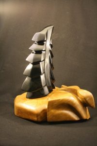 This was also the first piece I have worked from a smaller maquette, Windswept Spruce was a “chip” I worked with and wanted to recreate on a larger scale. As always the stone determines the direction ad when I looked at this stone, it just fit.