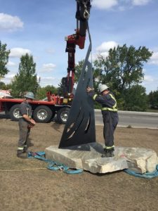 Located on the Mamawe Concourse at the Montrose Cultural Centre in Grande Prairie. The original idea was to unveil at Alberta Culture Days but with the piece done and ready for delivery, Mayor Given asked if it could be set up for the Tour of Alberta instead.